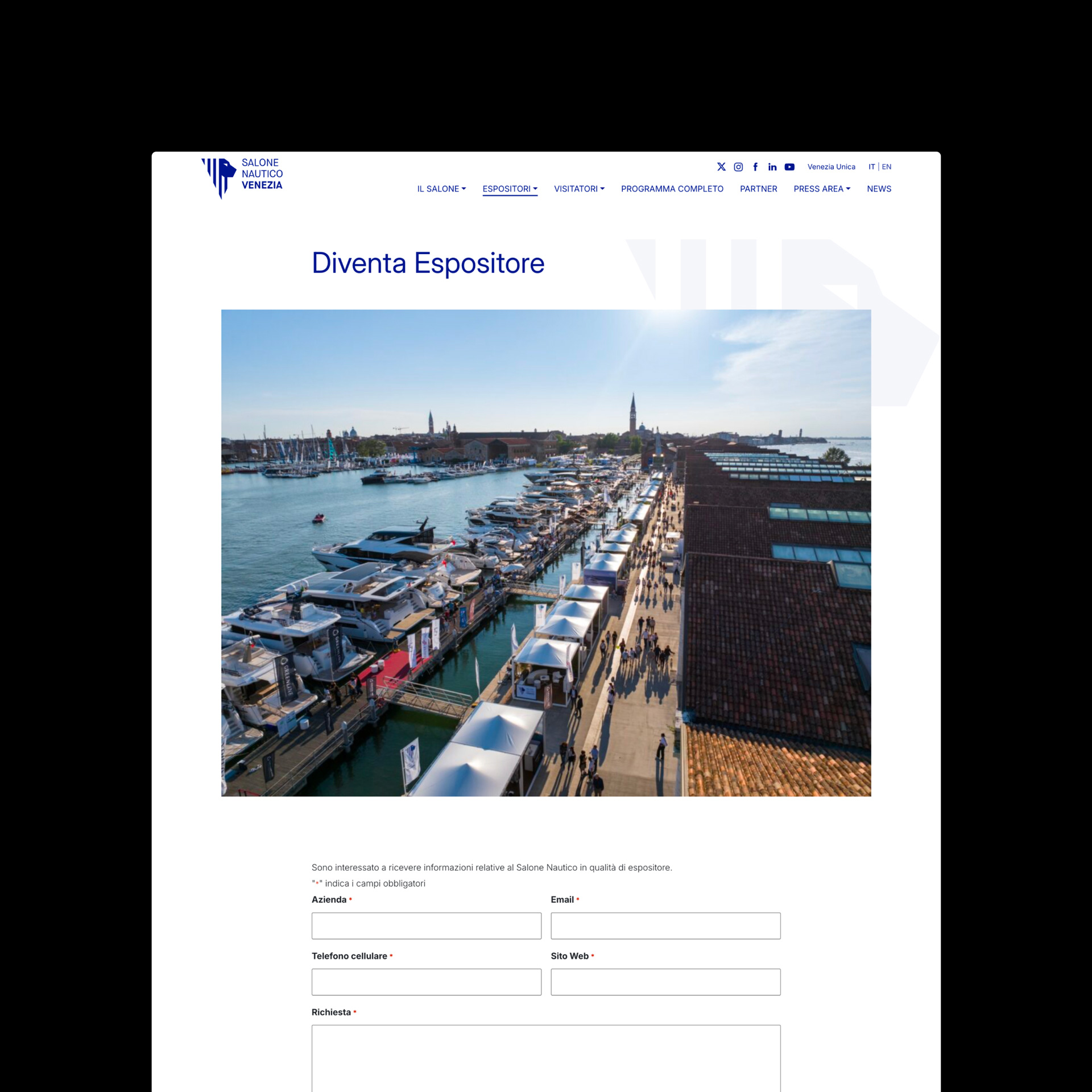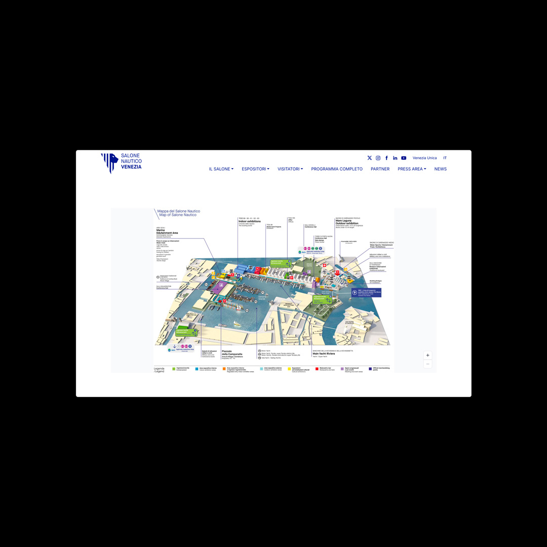 La collaborazione con il Salone Nautico di Venezia è nata con la prima edizione e si è consolidata come partnership strategica volta a costruire un sito web capace di sostenere la portata internazionale dell’evento. L’obiettivo era tradurre in un linguaggio digitale chiaro e ordinato l’esperienza immersiva che ogni anno prende vita all’interno dell’Arsenale, creando un ecosistema informativo in grado di rispondere a target differenziati e di gestire in tempo reale le esigenze di visitatori, espositori e operatori media. La progettazione del sito è stata affrontata come un esercizio di brand experience digitale, garantendo performance elevate anche nei momenti di massimo traffico.